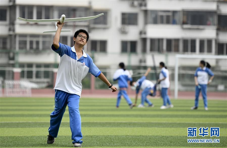 7月27日,參加暑期實踐營的學(xué)生在天津中學(xué)操場上體驗航模。新華社記者 李然 攝