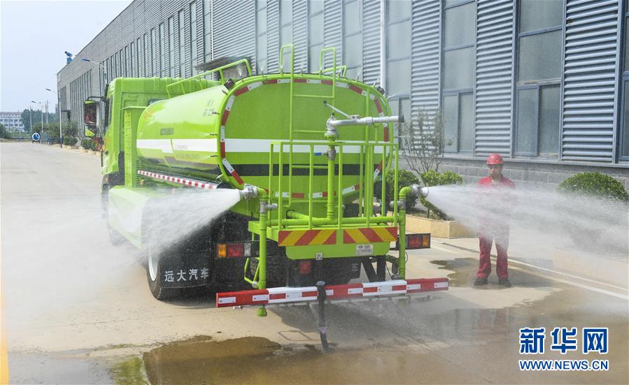 7月27日,河北景縣開(kāi)發(fā)區(qū)一家新能源汽車制造公司工人在對(duì)增程式新能源灑水車進(jìn)行性能校驗(yàn)。新華社記者 李曉果 攝