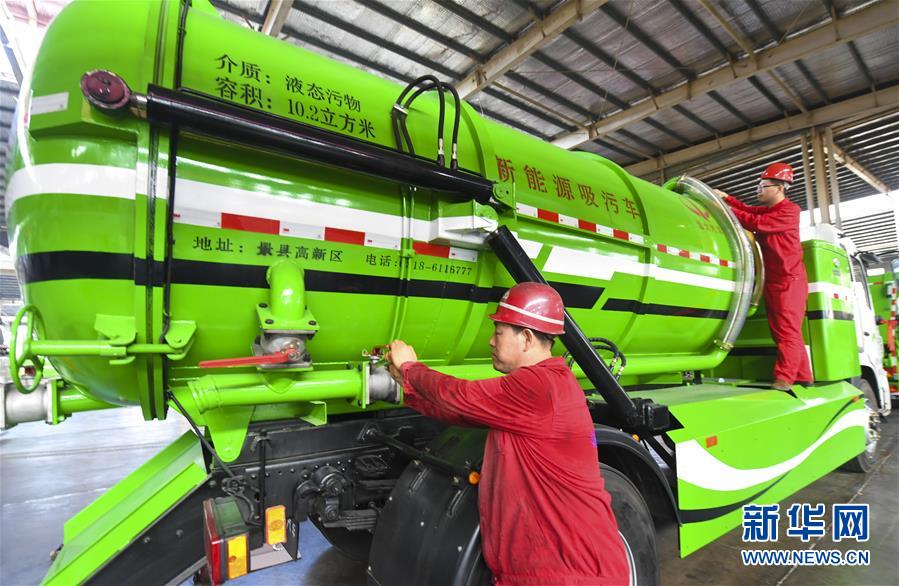 7月27日,河北景縣開發(fā)區(qū)一家新能源汽車制造公司工人對(duì)新能源吸污車進(jìn)行調(diào)試。新華社記者 李曉果 攝