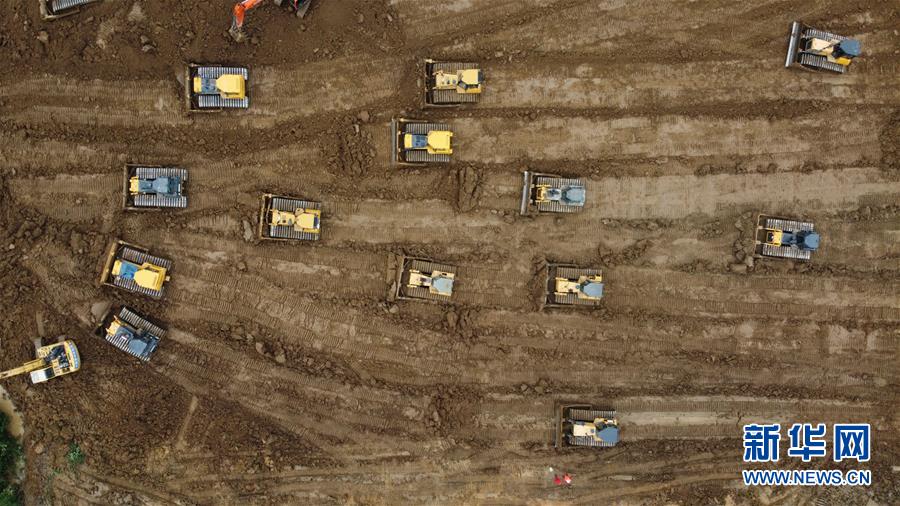 7月28日,在姜唐湖蓄洪區(qū)戴家湖一處涵閘險(xiǎn)情處置現(xiàn)場,人們操作機(jī)械設(shè)備在搶筑臨時(shí)圩堤(無人機(jī)照片)。新華社記者張端攝