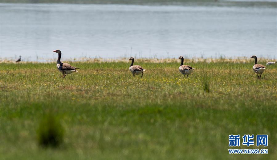 7月28日,灰雁在桃力廟—阿拉善灣海子覓食。鄂爾多斯?jié)竦匚挥趲觳箭R沙漠、毛烏素沙地接壤地帶,2002年被列入國際重要濕地名錄。從2006年開始,由于濕地湖面萎縮、湖心島消失,在此筑巢繁殖的世界瀕危物種遺鷗幾近消失。近年來,當(dāng)?shù)夭扇《喾N治理措施,濕地生態(tài)環(huán)境逐步好轉(zhuǎn)。2019年起,濕地內(nèi)的桃力廟—阿拉善灣海子迎來遺鷗大規(guī)?!盎貧w”。如今,40多種鳥類在此棲息,鄂爾多斯?jié)竦刂匦鲁蔀轼B類的樂園。新華社記者連振攝