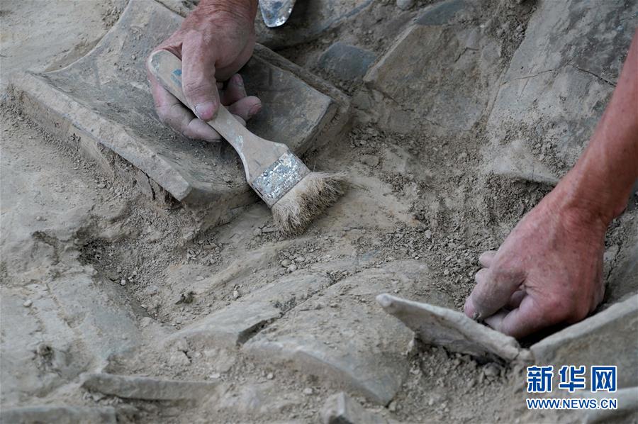 工作人員在河南省開(kāi)封市州橋及附近汴河遺址進(jìn)行清理發(fā)掘(7月27日攝)。新華社記者李安攝