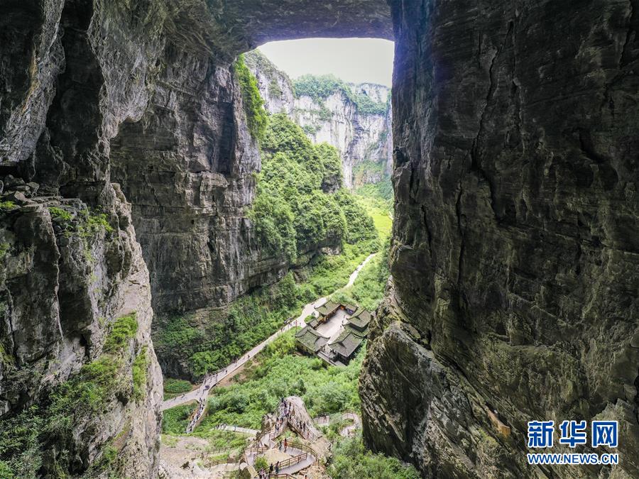 7月29日,游客在天生三橋景區(qū)內(nèi)的天龍橋景點(diǎn)游覽。夏日時(shí)節(jié),世界自然遺產(chǎn)地重慶武隆天生三橋景區(qū)風(fēng)景如畫,氣勢(shì)磅礴的天生石橋和綠意盎然的山林相映成趣,吸引眾多游客前來觀光。新華社記者劉潺攝