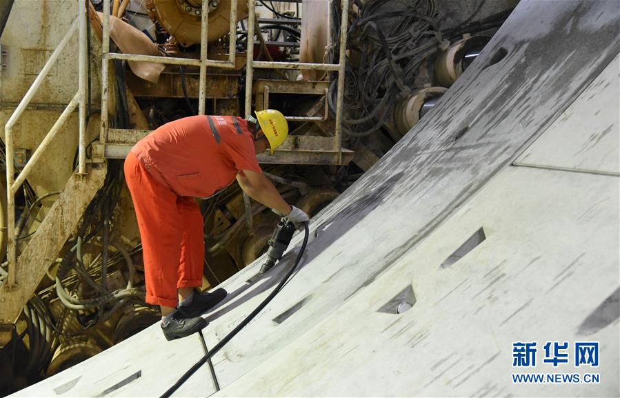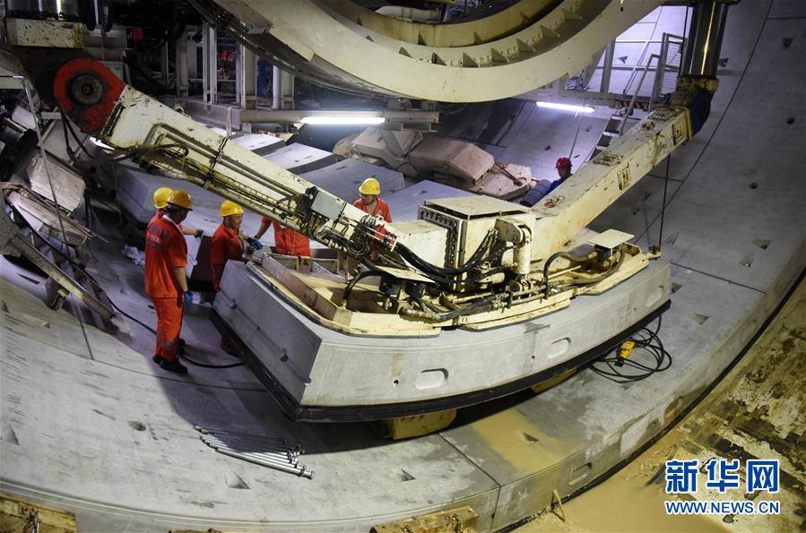 7月29日,“萬里黃河第一隧”——濟南黃河隧道工程施工人員在施工作業(yè)。新華社記者王凱攝