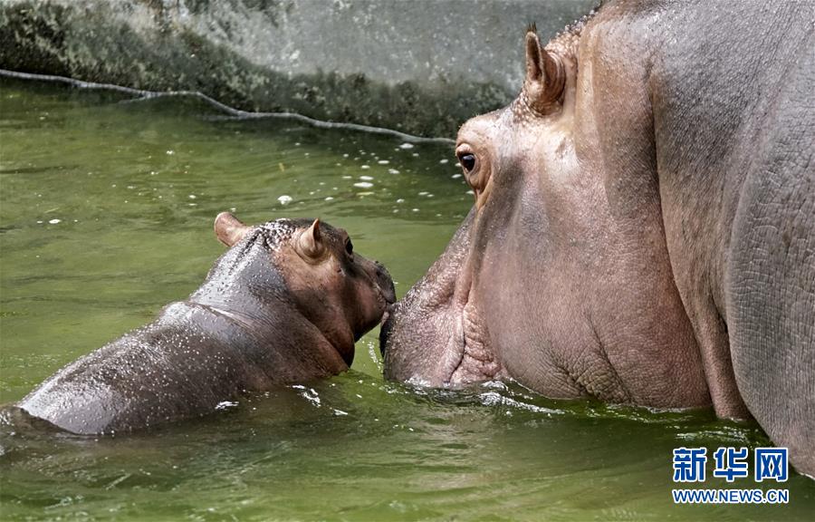 北京動物園的河馬母子在恒溫水池內(nèi)乘涼(7月30日攝)。炎炎夏日,北京動物園根據(jù)動物生活習性,為動物配備了自動噴淋噴霧、空調(diào)籠舍、恒溫水池、遮陽棚等各類避暑設施,同時還準備了西瓜等降溫食品,保障動物平安舒適地度過伏天。新華社記者李欣攝