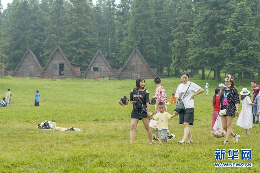 7月30日,游客在仙女山國(guó)家森林公園高山草場(chǎng)游玩。新華社記者劉潺攝