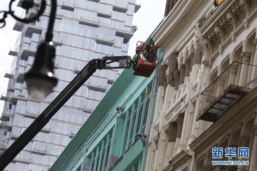 7月30日,在美國紐約蘇豪商業(yè)區(qū),工人在一棟建筑外作業(yè)。美國商務(wù)部30日公布的首次預(yù)估數(shù)據(jù)顯示,受新冠疫情導(dǎo)致經(jīng)濟大面積“停擺”和消費停滯拖累,今年第二季度美國實際國內(nèi)生產(chǎn)總值(GDP)按年率計算下滑32.9%,創(chuàng)1947年有記錄以來最大降幅。新華社記者王迎攝