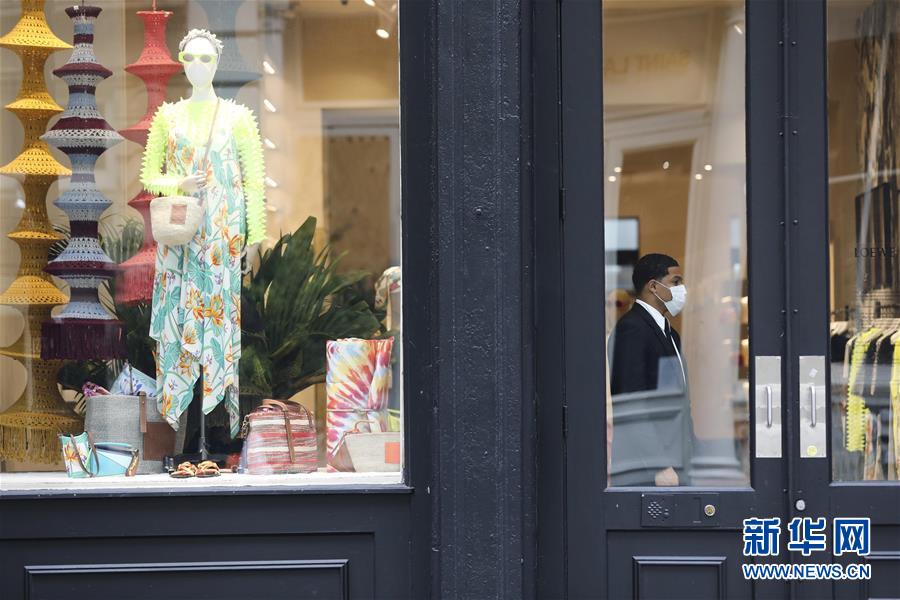 7月30日,在美國紐約蘇豪商業(yè)區(qū),店員等待顧客光臨。美國商務(wù)部30日公布的首次預(yù)估數(shù)據(jù)顯示,受新冠疫情導(dǎo)致經(jīng)濟大面積“停擺”和消費停滯拖累,今年第二季度美國實際國內(nèi)生產(chǎn)總值(GDP)按年率計算下滑32.9%,創(chuàng)1947年有記錄以來最大降幅。新華社記者王迎攝
