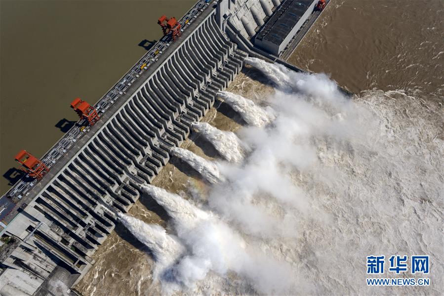 8月2日,江水通過三峽大壩下泄(無人機(jī)照片)。據(jù)水利部長江水利委員會(huì)消息,7月以來,長江流域共出現(xiàn)6次強(qiáng)降雨過程,長江上游先后發(fā)生3次編號(hào)洪水。為減輕中下游防洪壓力,包括三峽、葛洲壩在內(nèi)的長江中上游水庫群共攔洪300多億立方米。新華社記者杜華舉攝