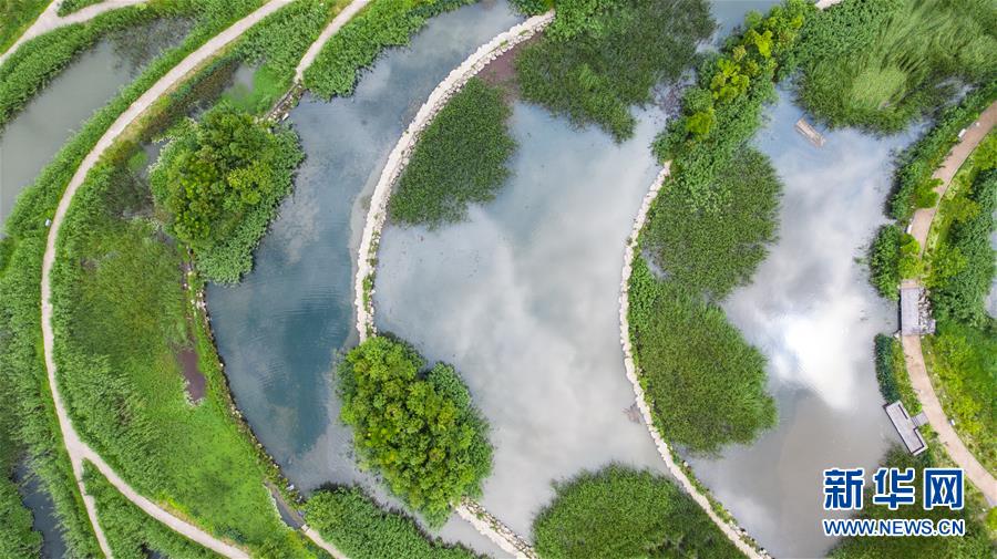 六盤水明湖國(guó)家濕地公園風(fēng)景(無人機(jī)照片,6月17日攝)。新華社記者陶亮攝