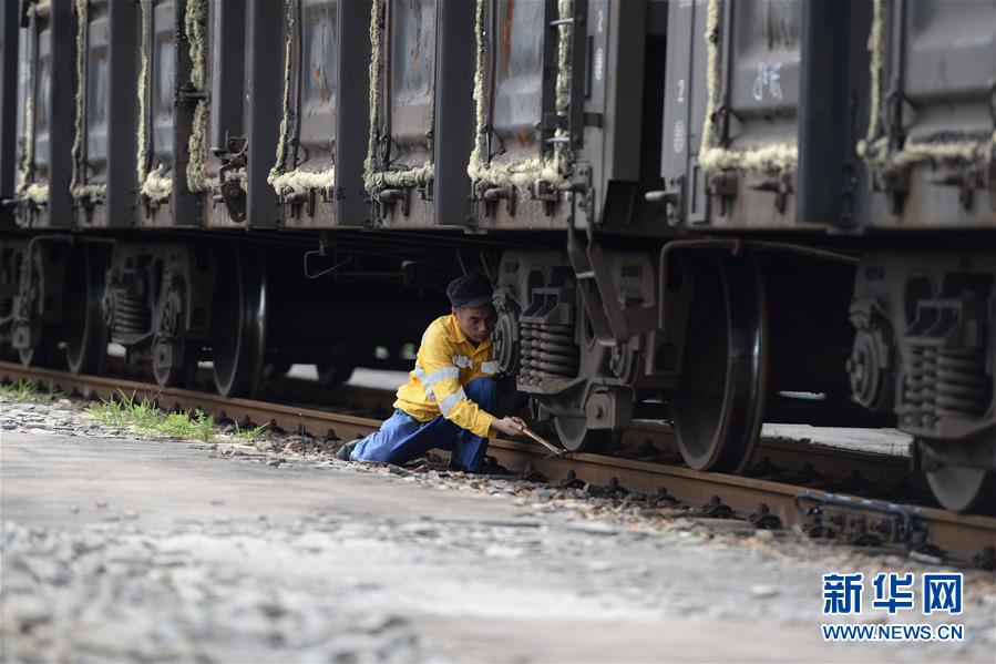 8月6日,合肥運(yùn)用車間列車檢修員對(duì)車輛進(jìn)行檢修。合肥市近日持續(xù)高溫天氣。在中國(guó)鐵路上海局集團(tuán)有限公司杭州北車輛段合肥運(yùn)用車間,386名列車檢修工人頭頂烈日?qǐng)?jiān)守崗位,確保暑運(yùn)列車的安全運(yùn)行。據(jù)了解,暑運(yùn)期間,合肥運(yùn)用車間日均檢修列車105列,檢修車廂5058節(jié)。新華社記者黃博涵攝