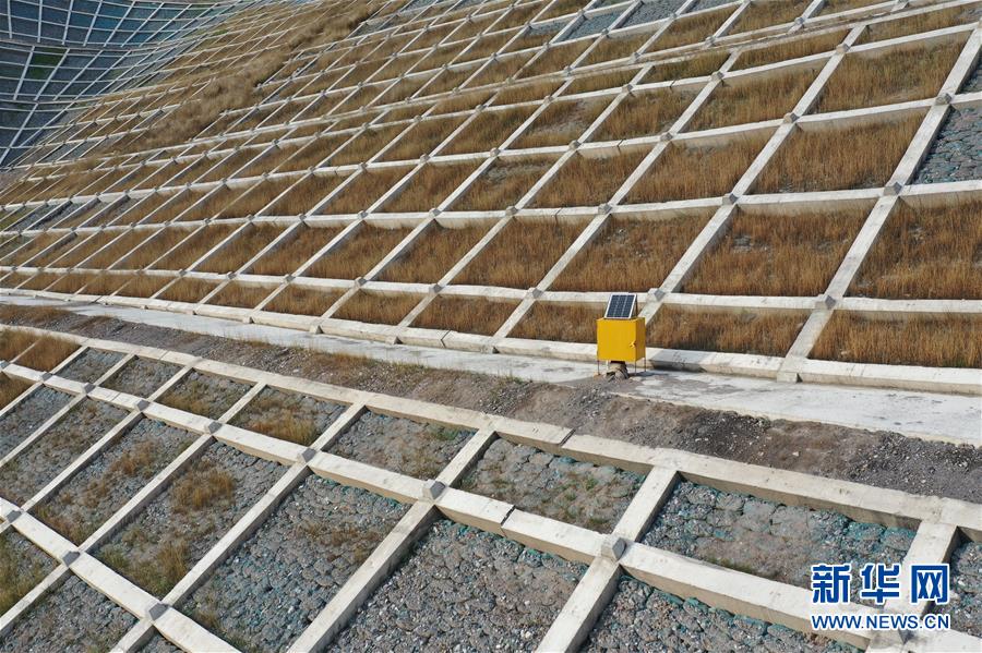 這是7月15日在舟曲縣南峪鄉(xiāng)江頂崖山體滑坡治理點(diǎn)拍攝的一處技術(shù)監(jiān)測(cè)設(shè)備(無人機(jī)照片)。新華社記者杜哲宇攝