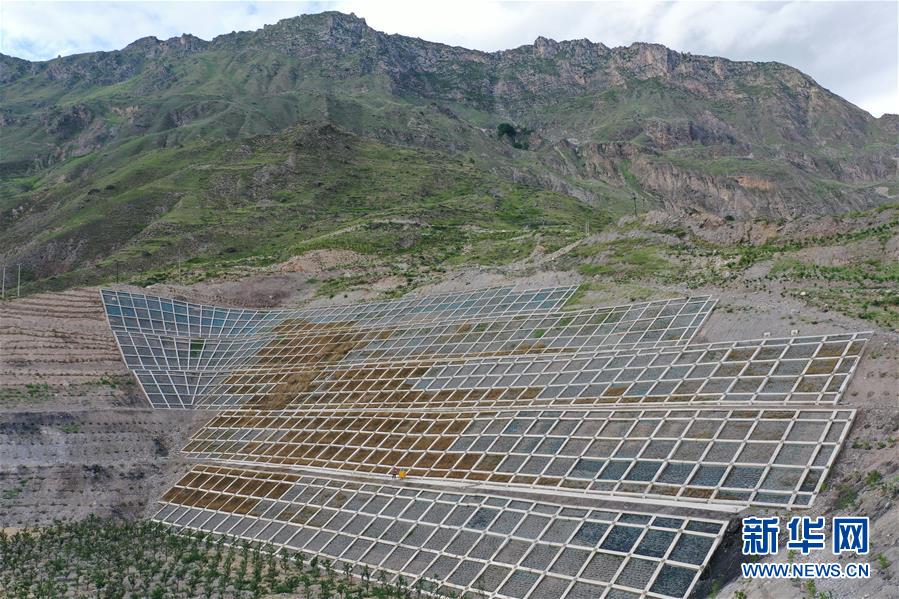 這是7月15日拍攝的舟曲縣南峪鄉(xiāng)江頂崖山體滑坡治理點(diǎn)(無人機(jī)照片)。新華社記者杜哲宇攝