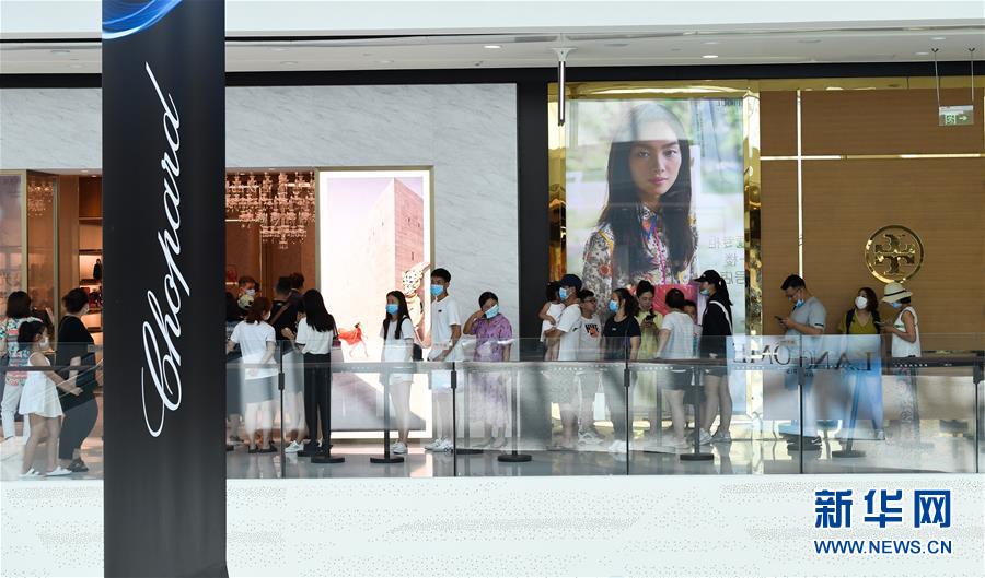 8月6日,游客在三亞國(guó)際免稅城排隊(duì)進(jìn)店。新華社記者楊冠宇攝