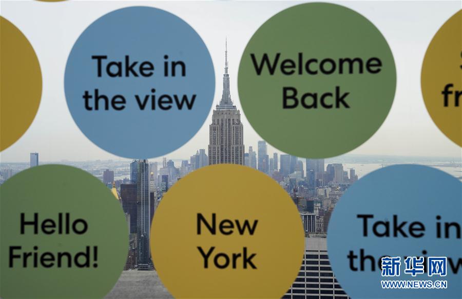 這是8月6日在美國紐約洛克菲勒中心觀景臺上拍攝的城市景觀。當日,3月份暫時關(guān)閉的洛克菲勒中心觀景臺恢復對公眾開放。每天13時至21時,人們可戴口罩前往參觀。新華社記者王迎攝