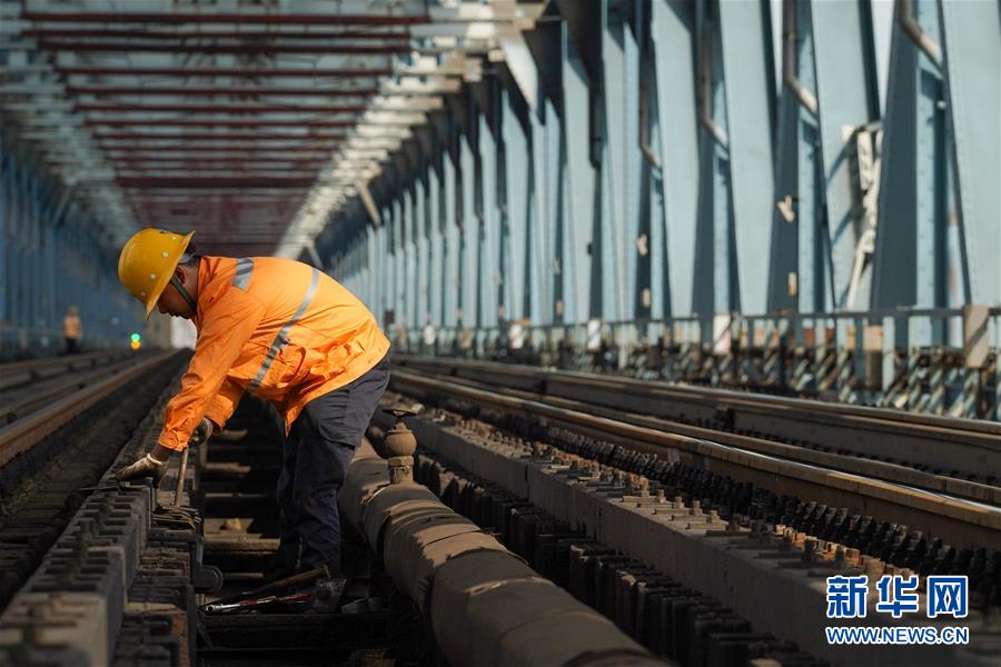 8月6日,一位橋隧工在南京長江大橋作業(yè)點拆螺桿。新華社記者李博攝