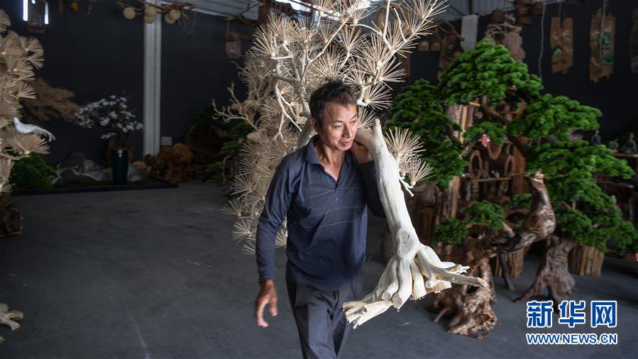 8月7日,一名工人在永福縣永安鄉(xiāng)根雕工藝品就業(yè)扶貧車間搬運(yùn)根雕半成品。2017年以來(lái),廣西桂林市永??h永安鄉(xiāng)通過(guò)幫扶返鄉(xiāng)青年創(chuàng)業(yè)的方式,建立起根雕工藝品就業(yè)扶貧車間,組織貧困群眾進(jìn)車間務(wù)工學(xué)藝,把當(dāng)?shù)刎S富的朽木和柑橘樹根枝資源利用起來(lái),加工成盆景、茶桌、吊燈等根雕工藝品,不僅幫助貧困群眾在家門口掌握一技之長(zhǎng),還讓他們?cè)诿撠氄焙髮?shí)現(xiàn)穩(wěn)定增收。新華社記者張愛(ài)林?jǐn)z