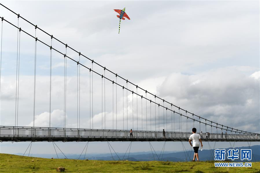 8月8日,游客在貴州省龍里油畫大草原旅游觀光。近日,貴州省黔南布依族苗族自治州龍里縣境內氣候宜人,龍里油畫大草原、“龍門鎮(zhèn)”武俠文化主題景區(qū)等景點吸引眾多游客前來觀光旅游。新華社記者楊文斌攝。