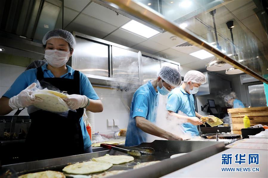 在上海地鐵13號線世博會博物館地鐵站附近的一家盒小馬服務(wù)點,工作人員在制作煎餅果子等早餐餐品(7月17日攝)。近年來,在上海崛起了一批以盒馬、叮咚、拼多多為代表的在線經(jīng)濟(jì)新力量,在助力脫貧攻堅、提升城市居民品質(zhì)生活方面發(fā)揮著重要作用。電商加持下的“云農(nóng)業(yè)”加速發(fā)展,一端為市民提供更便宜新鮮的農(nóng)產(chǎn)品,另一端讓山區(qū)的優(yōu)質(zhì)產(chǎn)品加速進(jìn)入城市餐桌,化解交通不便、農(nóng)產(chǎn)品滯銷等問題。新華社記者方喆攝。