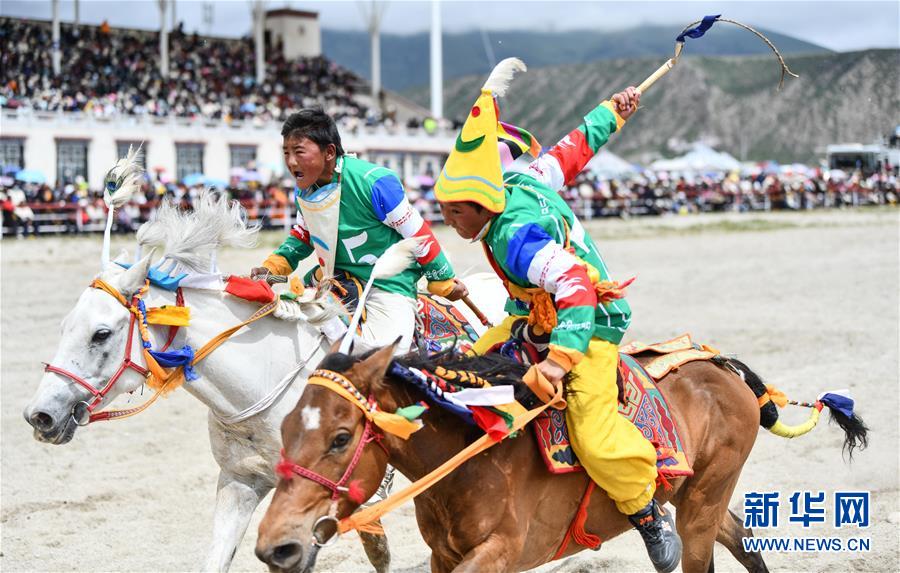 8月10日,騎手馳騁在當(dāng)雄縣賽馬場。新華社記者晉美多吉攝。
