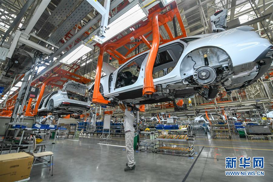 8月10日,在一汽-大眾長(zhǎng)春基地總裝車(chē)間,工人在裝配車(chē)輛。中國(guó)第一汽車(chē)集團(tuán)有限公司7月銷售整車(chē)32.2萬(wàn)輛,同比增長(zhǎng)23.2%,延續(xù)上半年的增長(zhǎng)態(tài)勢(shì)。新華社記者張楠攝。