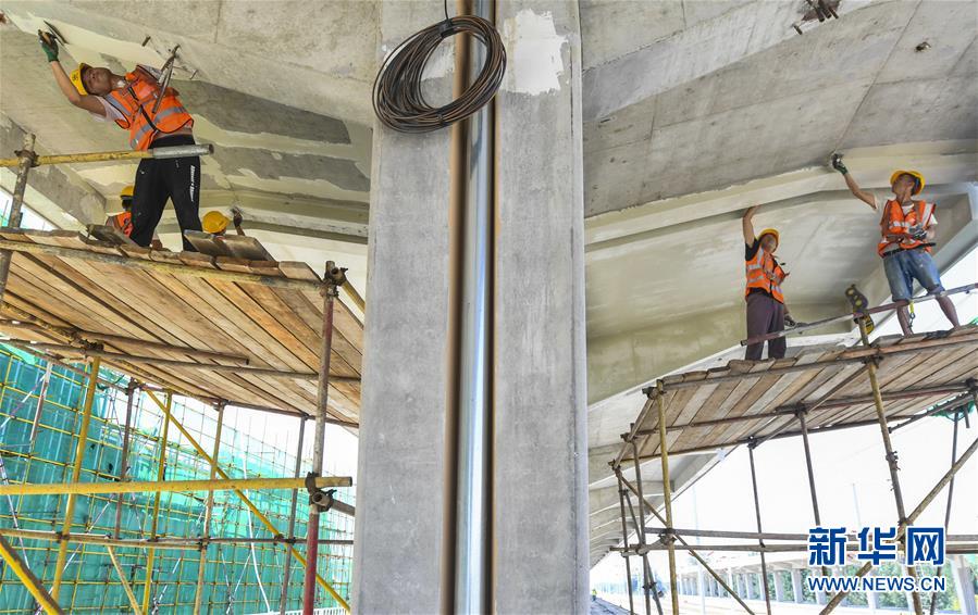 8月10日,工人在京雄城際鐵路霸州北站建設(shè)工地為雨棚梁底抹膩子。京雄城際鐵路霸州北站站臺雨棚混凝土結(jié)構(gòu)施工日前全部完成,目前霸州北站已全面轉(zhuǎn)入裝飾裝修和機電安裝階段,預(yù)計2020年底投入使用。京雄城際鐵路是連接北京市區(qū)、大興機場和雄安新區(qū)的重要干線。建成后,將進一步完善京津冀區(qū)域高速鐵路網(wǎng)結(jié)構(gòu),便利沿線群眾出行,對于推動京津冀協(xié)同發(fā)展和支撐建設(shè)雄安新區(qū)具有重要意義。新華社記者李曉果攝。