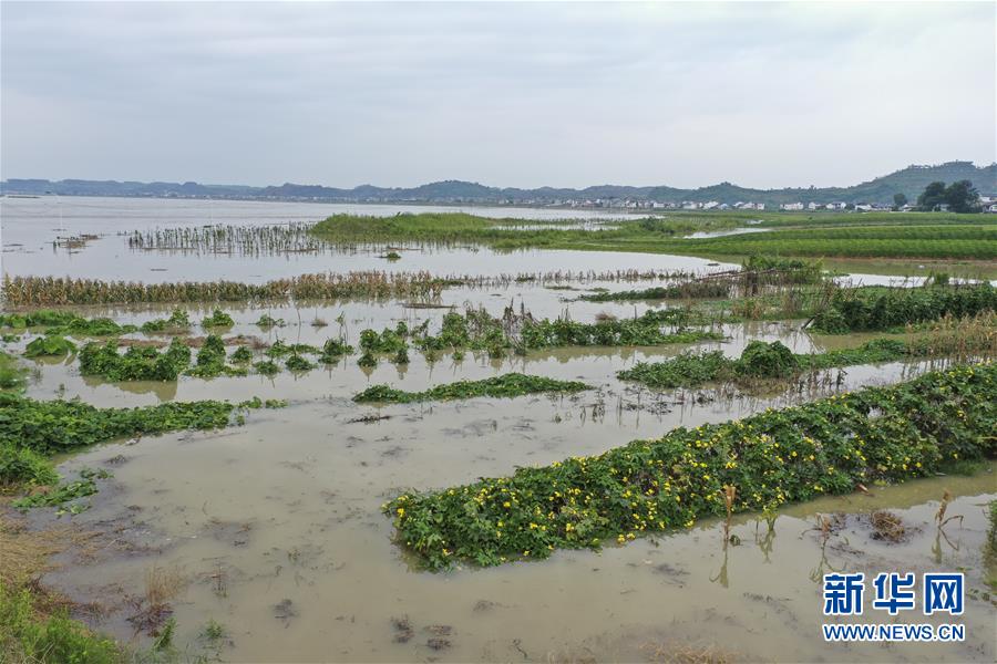 8月12日,重慶市潼南區(qū)桂林街道雙壩村蔬菜基地,部分低洼地帶的農作物被洪水淹沒(無人機照片)。受強降雨影響,涪江潼南段迎來過境洪水。新華社記者 黃偉 攝