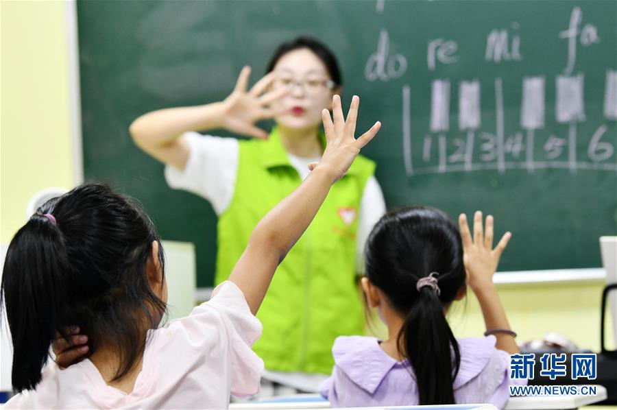 8月13日,貴州省思南縣雙塘街道麗景社區(qū)易地扶貧搬遷安置點的孩子們在上音樂課。新華社記者楊文斌攝