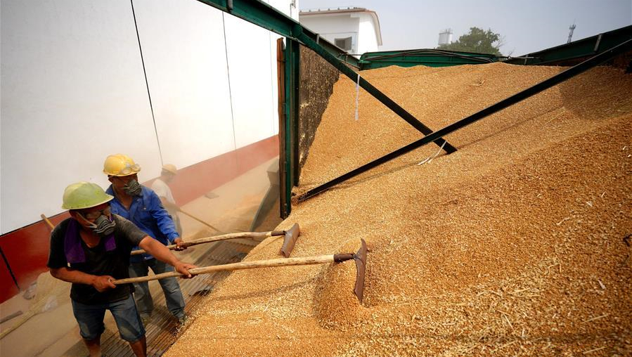 6月27日,河北內(nèi)丘縣扁鵲藥谷中藥材種植基地工人在對(duì)黑心金光菊進(jìn)行管護(hù)。