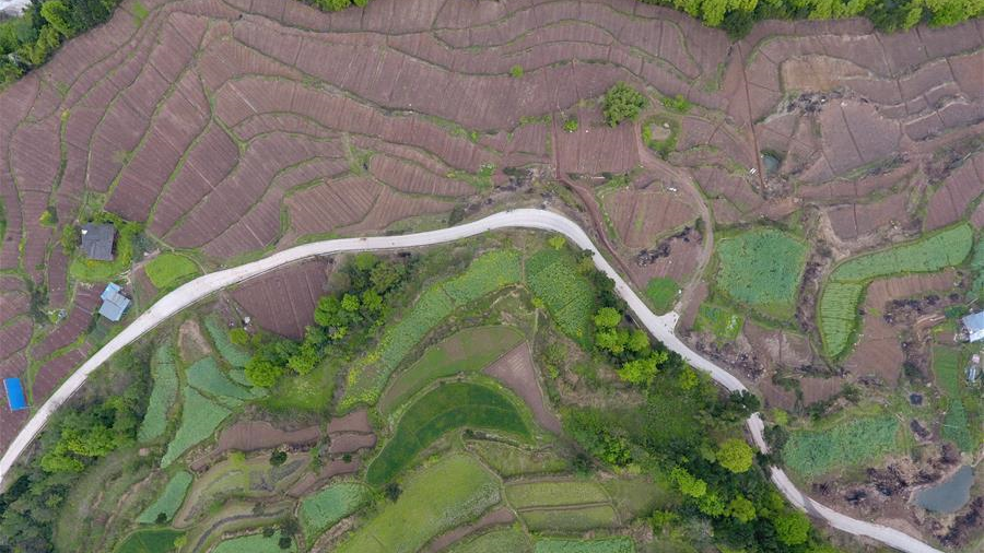 江蘇宿遷三臺(tái)山森林公園鮮花競(jìng)相開放,空中俯瞰,好似鋪撒在大地上的五彩畫卷。