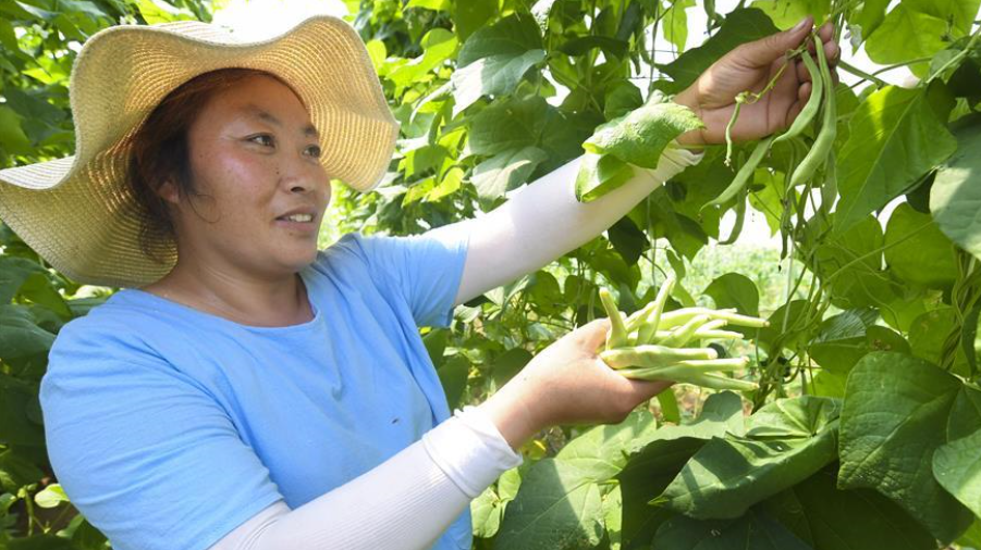 黑龍江省綏化市青岡縣蘆河鎮(zhèn)東升村貧困戶李淑琴在醬廠工作(7月21日攝)。