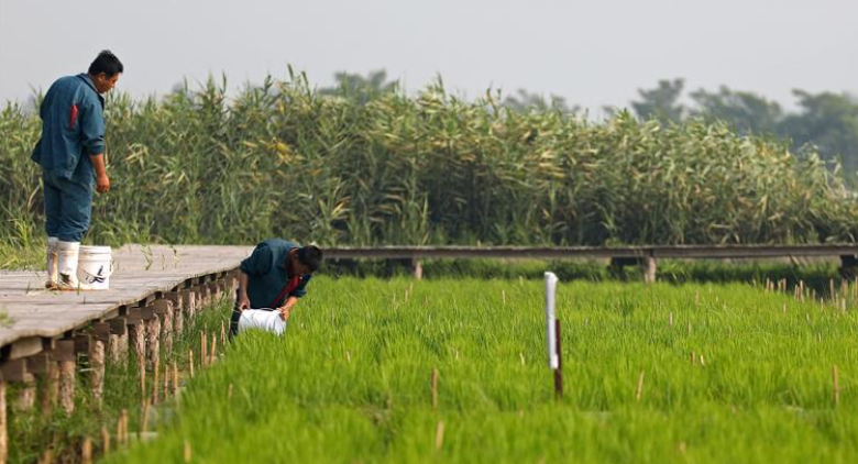西藏山南市桑日縣程巴村村民進行扦插苗泡水作業(yè)(3月11日攝)。