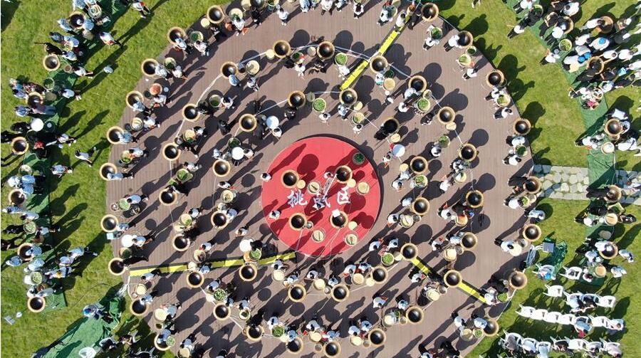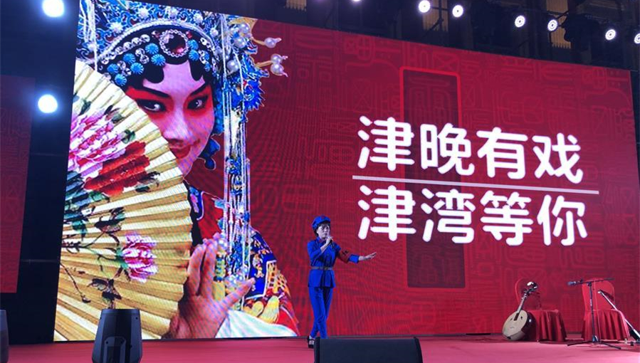 京劇愛好者在天津津?yàn)硰V場(chǎng)表演經(jīng)典京劇唱段。
