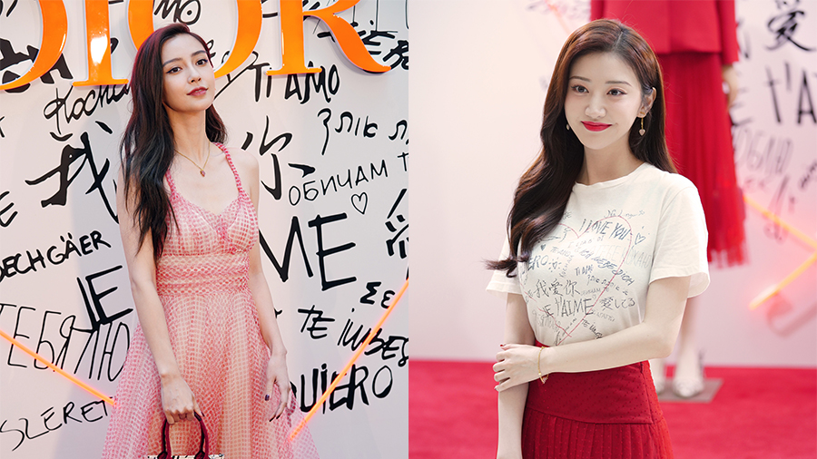 真的甜!baby穿粉裙造型清甜嫵媚 景甜穿“我愛你”T恤配紅裙嬌艷可人