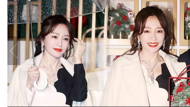 秦嵐撐傘雪膚紅唇美如畫 優(yōu)雅品香檳氣質高貴迷人
