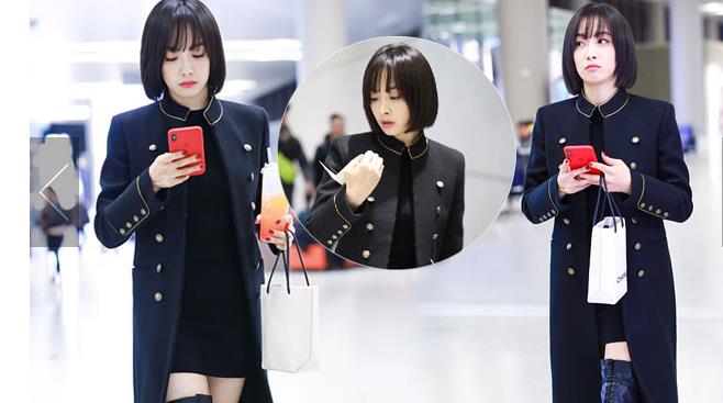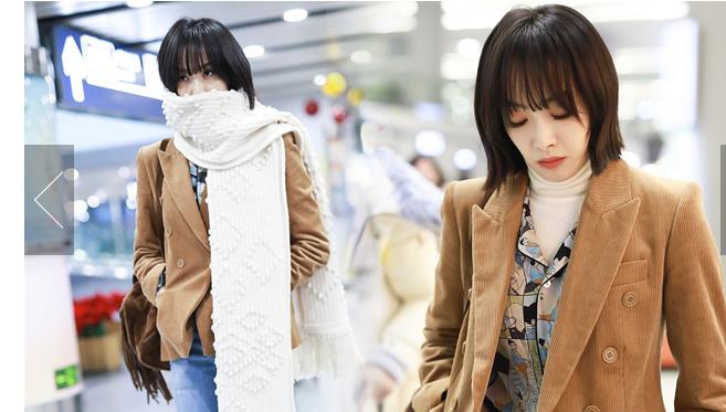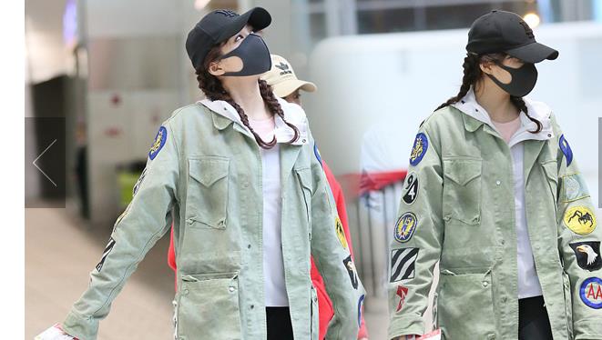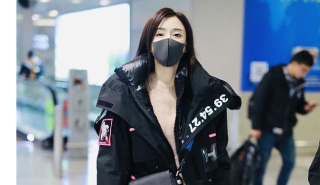 秦嵐潮味棉服亮相機場 口罩遮面露甜笑