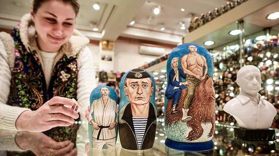 當(dāng)?shù)貢r(shí)間2018年3月13日,俄羅斯莫斯科,俄羅斯大選將于3月18日舉行,大選主題紀(jì)念品熱賣。