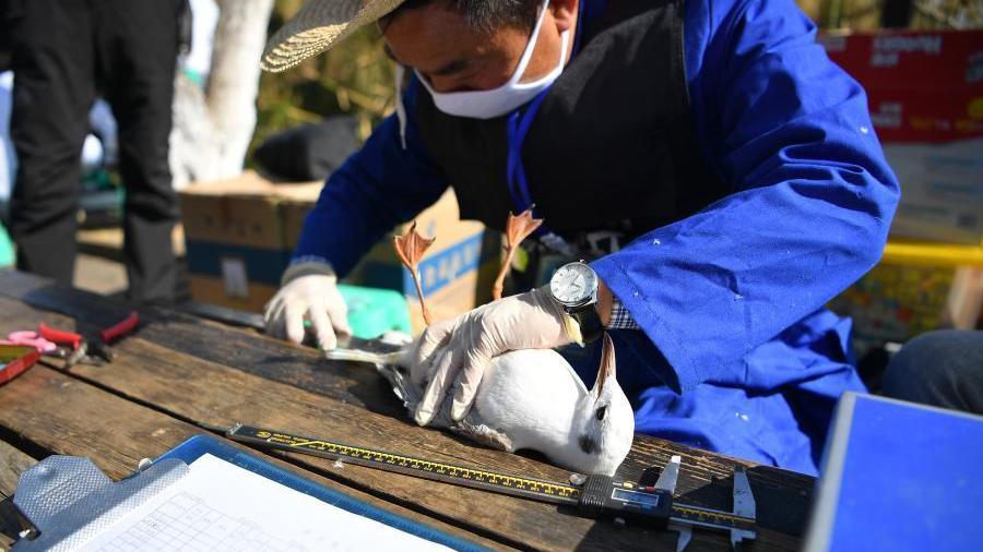 當日,昆明市瀕危動植物收容拯救中心工作人員來到滇池邊,為來昆明越冬的紅嘴鷗開展環(huán)志調查工作。