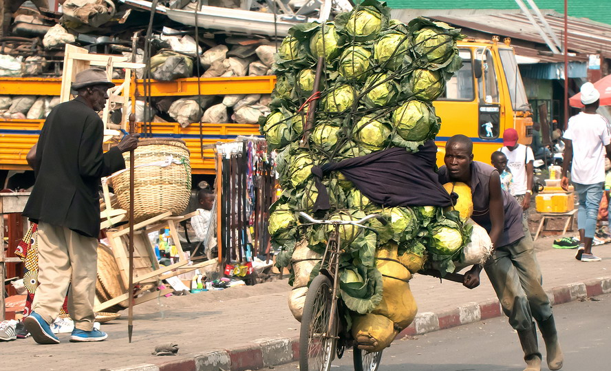 實拍靠自行車賺錢的剛果生意人,貨物堆積如山堪比汽車,畫面驚險