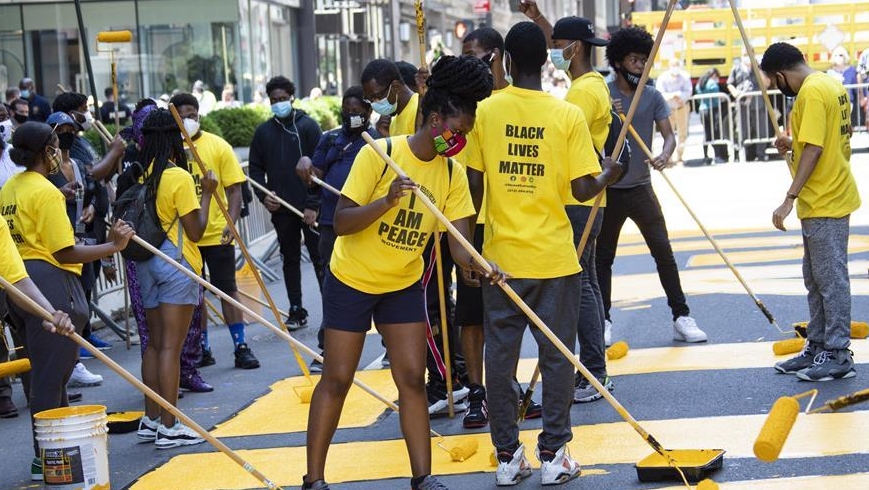 當天,數(shù)十人在紐約第五大道特朗普大廈前的路面上涂寫“黑人的命也是命”標語。