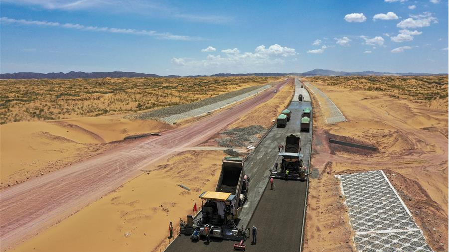 盛夏時節(jié),位于寧夏境內(nèi)的烏瑪(內(nèi)蒙古烏海市至青?,斍呖h)高速青銅峽至中衛(wèi)段正在抓緊施工建設(shè)。