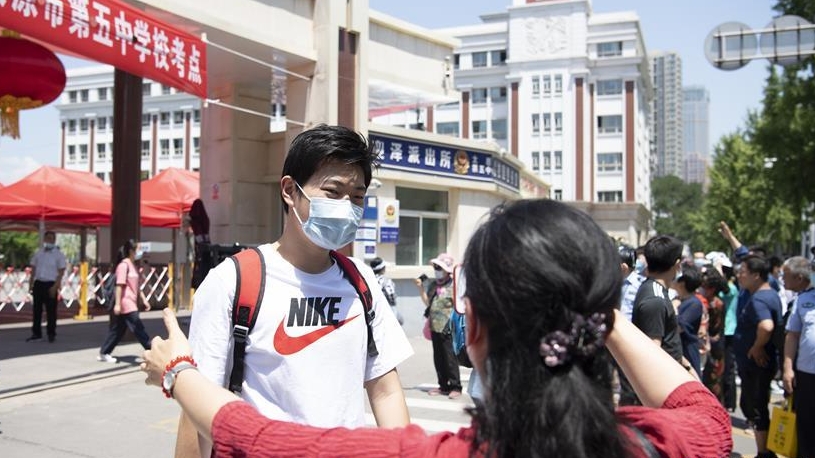 7月7日,在山西省太原市第五中學(xué)校考點(diǎn),結(jié)束首場(chǎng)科目考試的考生走出考場(chǎng)。