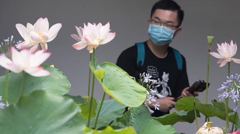 這是6月10日在比利時(shí)布魯塞爾拍攝的“沉浸式莫奈藝術(shù)展”現(xiàn)場(chǎng)。