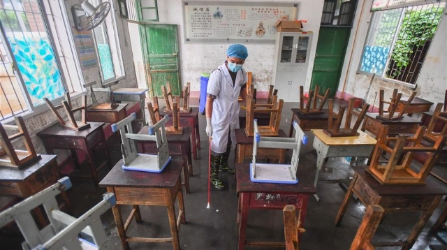 6月8日,永州市江華瑤族自治縣白芒營鎮(zhèn)車下完全小學開展清淤、消毒工作,為6月9日恢復上課做準備。