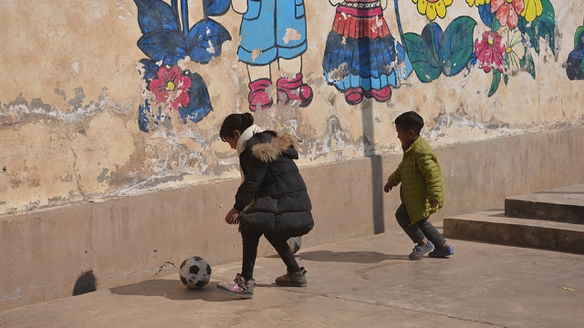 在海拔2700米高山上的瓦吾小學,一群孩子們在裸露著泥土的足球場上,追逐著滾動的足球,汗水浸濕了了衣服。