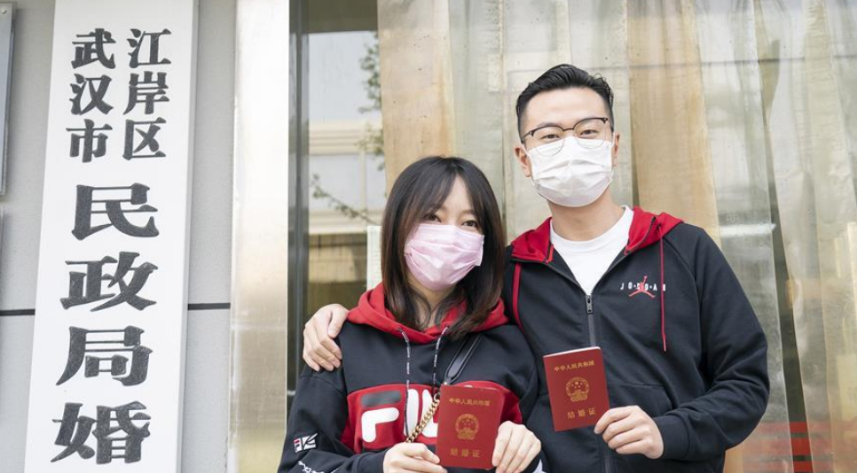 4月3日起,武漢市婚姻登記機構(gòu)陸續(xù)恢復辦理婚姻登記業(yè)務(wù)?;橐霎斒氯诵璩志G色健康碼預約登記,分批分時辦理。