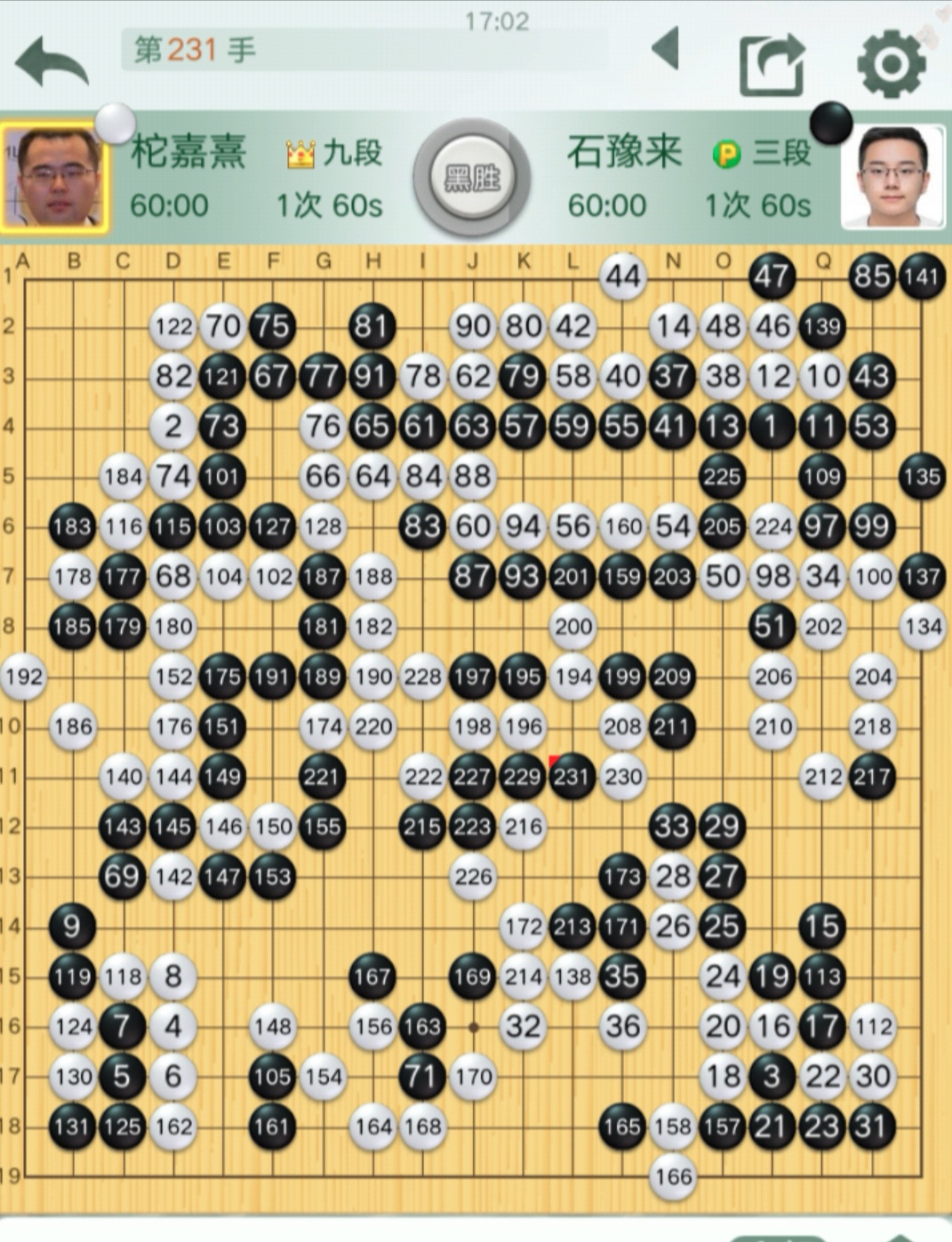 石豫來(lái)爆冷戰(zhàn)勝柁嘉熹(對(duì)陣棋譜)