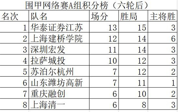 [附:2020年“華為手機(jī)杯”中國圍棋男子甲級隊(duì)聯(lián)賽網(wǎng)絡(luò)熱身賽A組積分排名表]