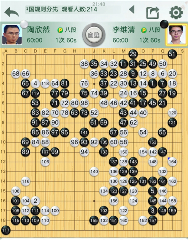 第三臺:李維淸八段(負(fù))陶欣然八段