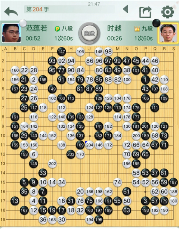 第二臺:范蘊(yùn)若八段(勝)時越九段(主將之戰(zhàn))